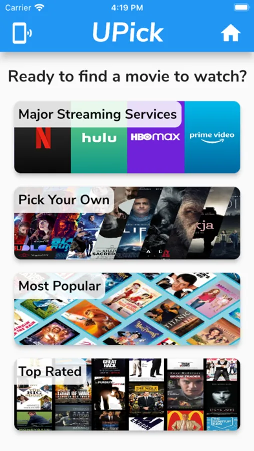 Can't find a movie to watch for movie night? Your significant other turning down all your movie suggestions? Just want to find a new movie to watch? Use UPick to find the perfect movie! Pick a category and play by yourself or with friends!