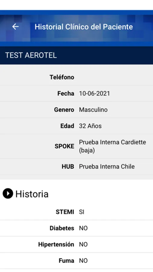 La aplicación de Programa Infarto permite acceder de manera rápida a información relevante del paciente como: