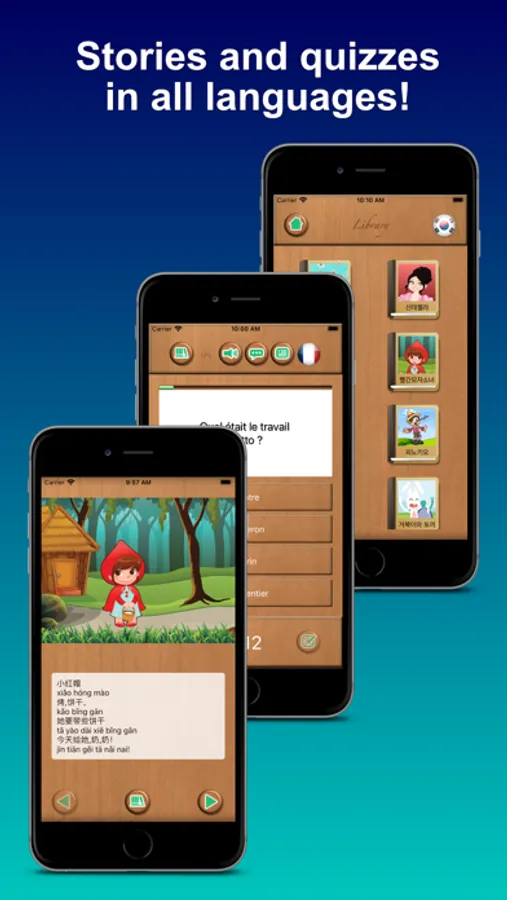- All the books, including text, narration and quizzes in 9 languages: English, Spanish, French, German, Italian, Dutch, Simplified Chinese, Japanese and Korean