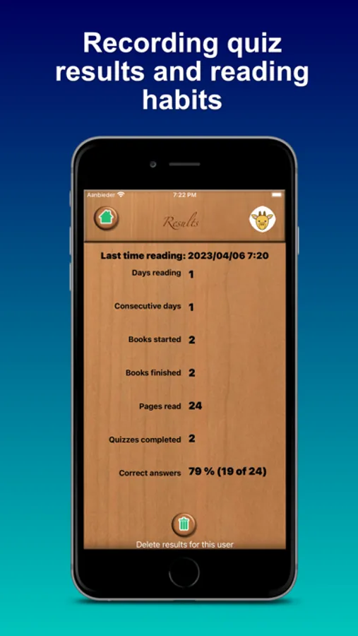 - Registering quiz results and reading habits