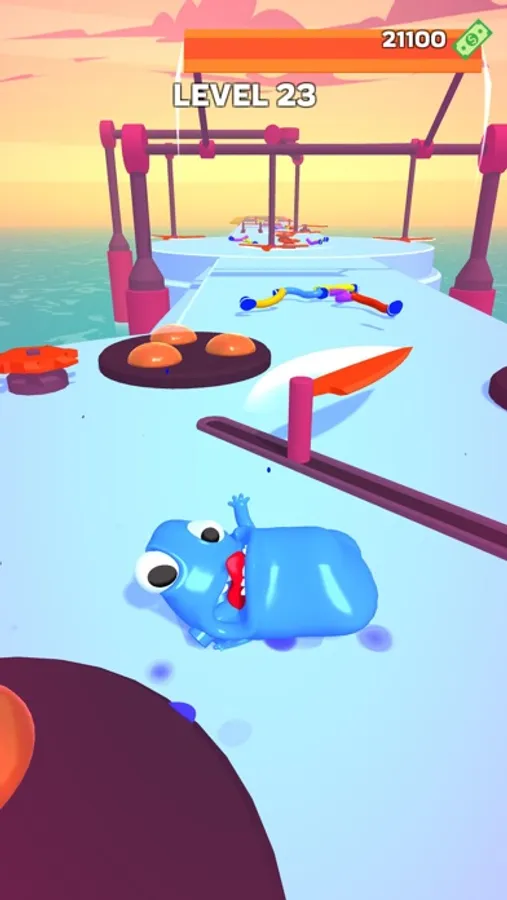 Collect as many legs as you can and watch out for the obstacles. The score you get depends on how many legs you have at the end of each level. Don't worry, you can keep rolling when you lost all of your legs!