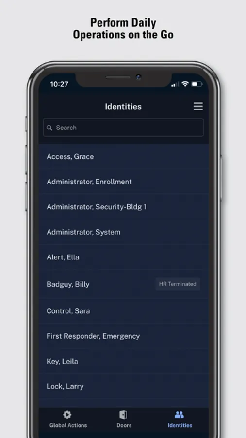 Search for identities, view their profile details, view past transactions and change access statuses in a single tap.