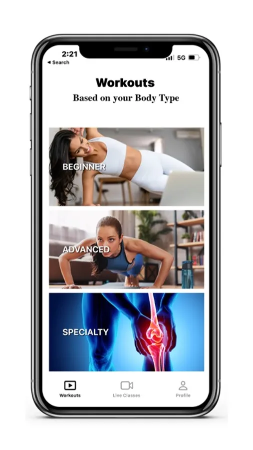Live and pre-taped workouts designed for your body weight, age, fitness level, and goals.