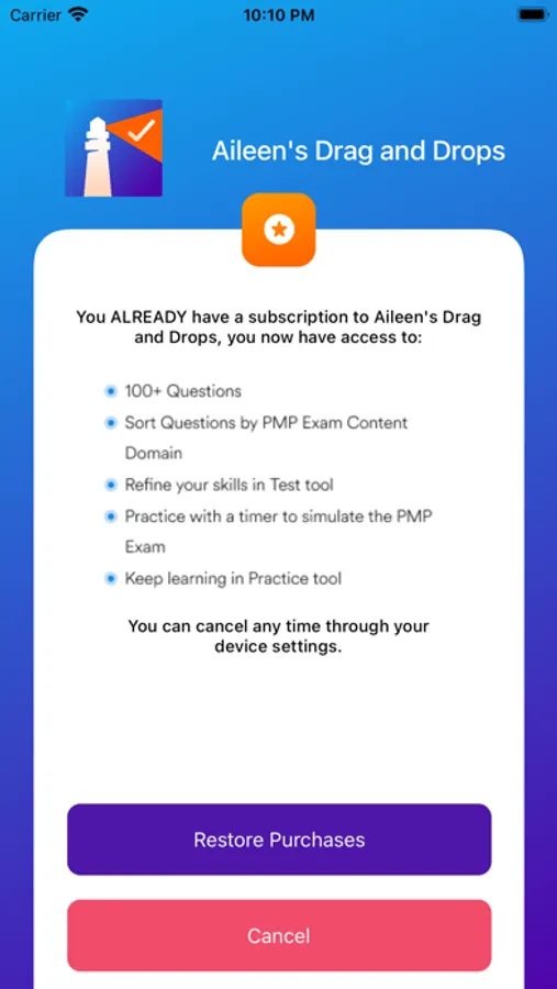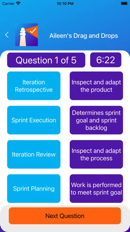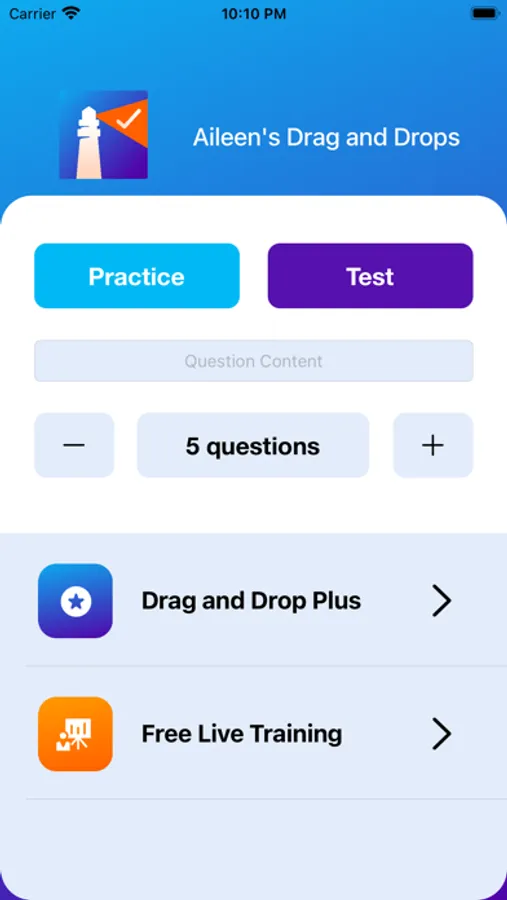 The app has both a free tool and a paid tool. The free tool contains 25 drag and drop questions to help the student experience drag and drop and learn PMP Exam content at the same time.