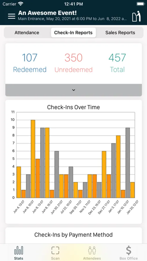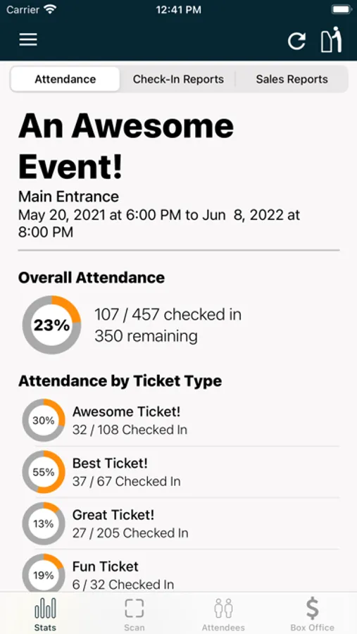 - Up the the minute view of the check-in progress for your event, see how many you have checked in with our easy to read attendance progress bar
