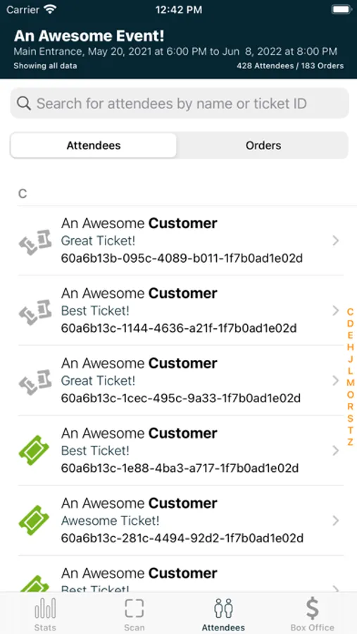 All check-ins are synced with our servers to allow you to redeem tickets from multiple devices at various entrances, without any fear of tickets being used more than once.