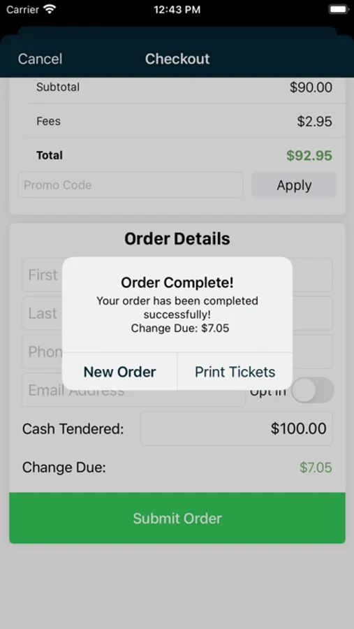 - Create orders and accept cash or credit cards (certain audio card readers are supported, see our website for more details)