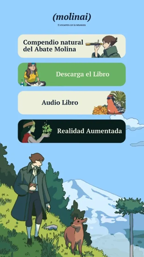 App para el libro "(Molinai) El encuentro con la naturaleza", que permite proyectar diversas ilustraciones en dos y tres dimensiones mediante la Realidad Aumentada. Además contiene una sección de audio libro.