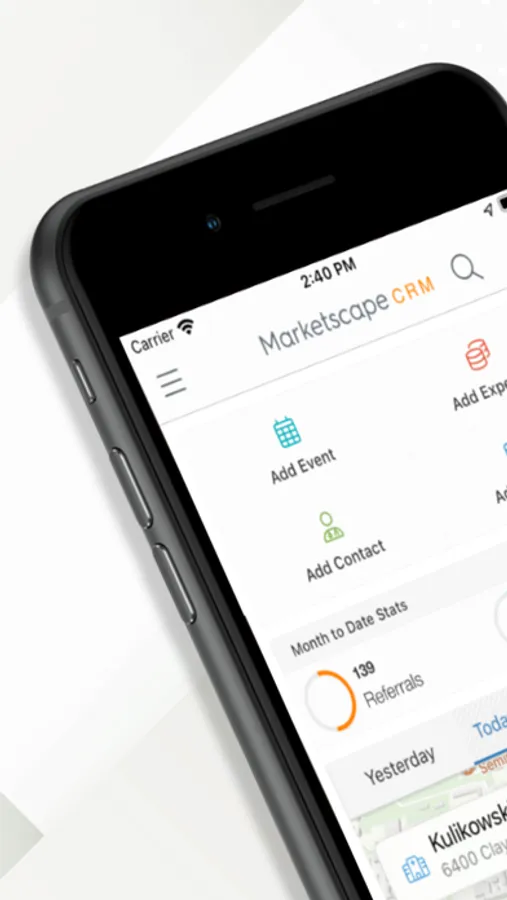The Post-Acute Growth PlatformDesigned with busy sales teams in mind, Marketscape CRM provides you with the tools you need on the go. Access market data, conversation starters, log activity, schedule events, enter expenses, and more all through your mobile device. Stay efficient out in the field and track against your goals without losing time.Features at your fingertips, and so much more: