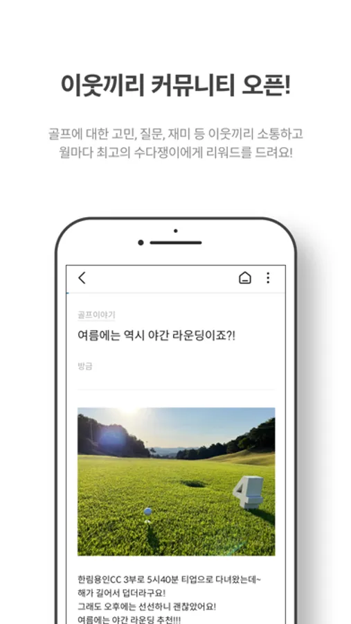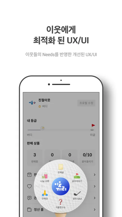 라는 의미로 골프존마켓이웃은 대한민국 No.1 골프용품 전문점 골프존마켓의 골프용품 중고거래 C2C 모바일 어플리케이션입니다.