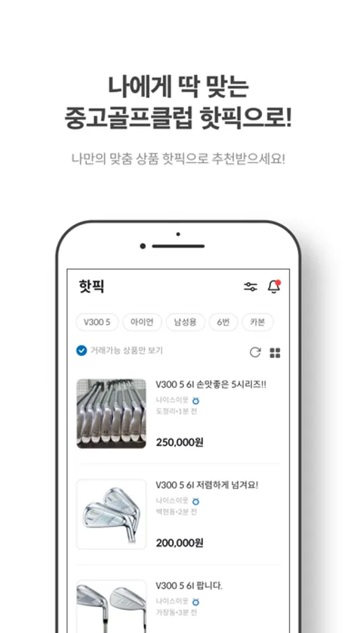 나만의 상품추천을 이용하여 보다 쉽게 원하는 골프용품을 분류하여 본인의 골프용품을 판매하고, 가성비 좋은 골프용품 구입도 해보세요
