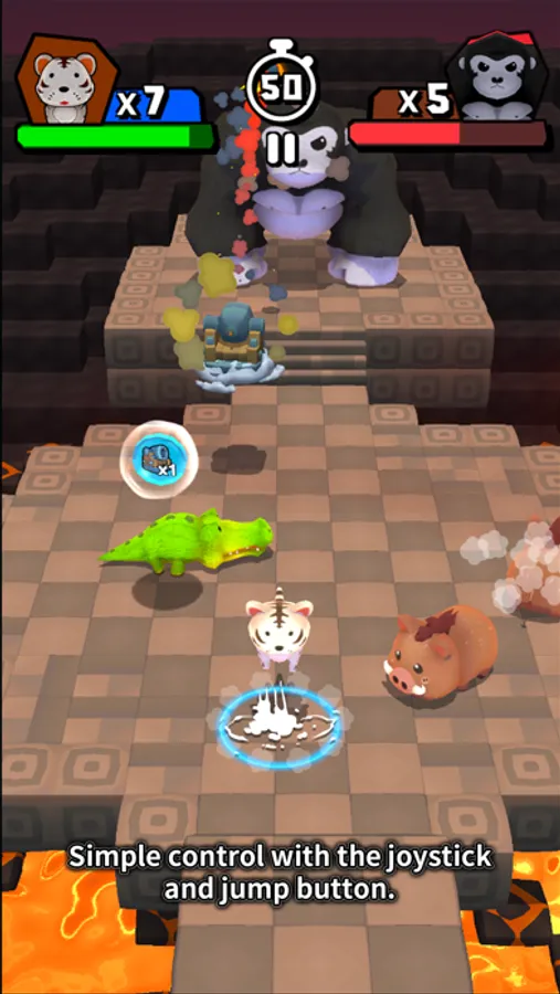 Go around the zoo and defeat King Kong with the Baby Tiger.