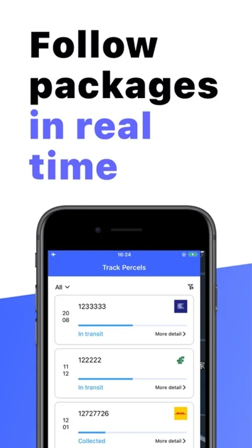 Just enter the shipping number, the app will automatically display info on the shipper and parcel status.