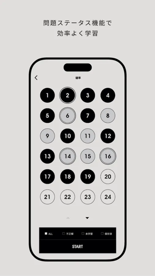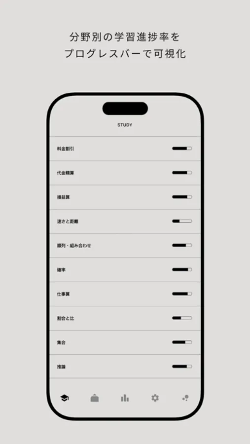 本アプリでは、お手持ちのスマートフォン・タブレットでお手軽に本格的なSPI非言語の対策を行えます。