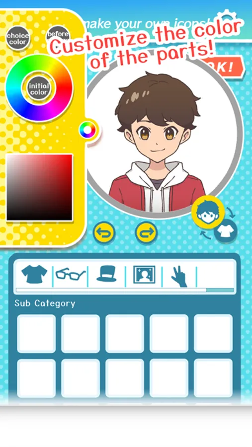 You can change the color of the clothes, hair, eyes, and mouth as you like!