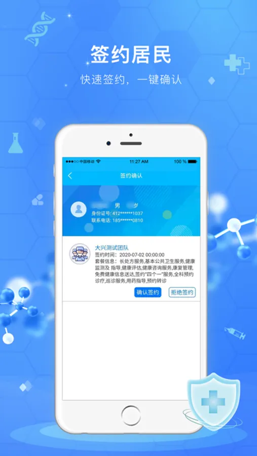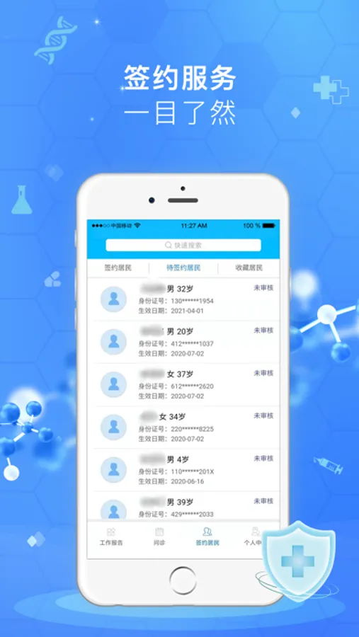 健康大兴APP医生端提供签约医生可以对所签约居民进行管理的功能,包含添加居民、查看签约居民的信息、查看已签约居民待签约居民、与患者提供在线咨询互动等。