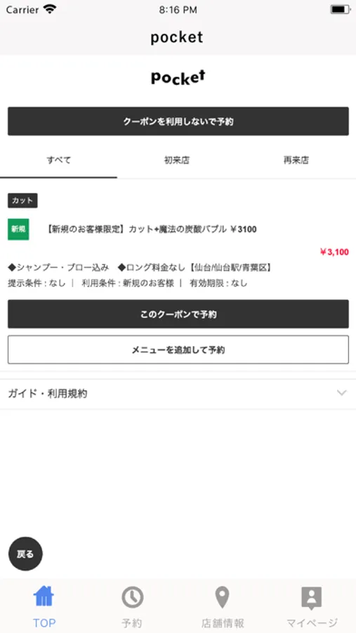 お得なクーポンが配信されます。ネット予約時にクーポン利用での予約も可能なので来店時もスムーズに施術頂けます。
