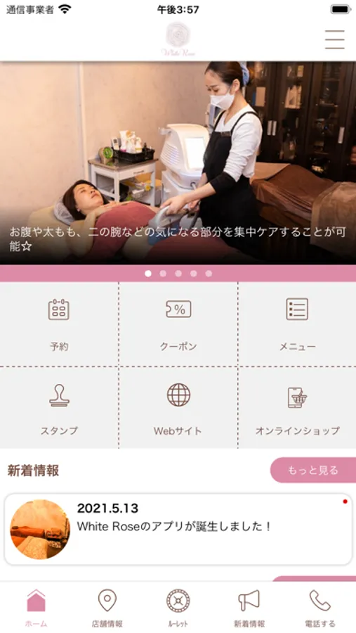 White Roseの公式アプリが登場。アプリを通して『White Rose』の新着情報やお得な情報をリアルタイムで受け取ることができます。また、いつでもお手元のスマートフォンから、メニューやご希望のお時間帯のチェック・ご予約などが可能です。アプリをインストールしていただくことにより『White Rose』を、より便利に身近にご利用していただけます。