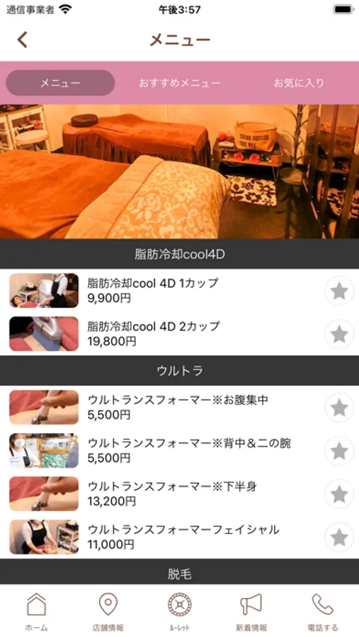 気になるサロンメニューや価格をアプリから簡単にご確認いただけます。