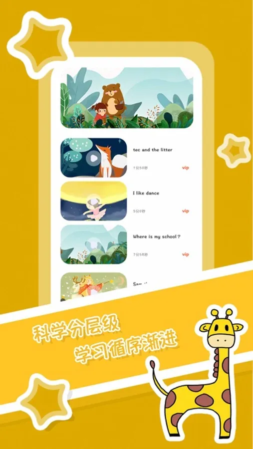 精选海量适龄读物,色彩丰富的画面、纯正流利的英语、活泼的背景音效,提供能听能看的互动绘本故事,提高学习英语的兴趣,寓教于乐,在娱乐中提升英文听、说、读、写的能力,打好英文基础,做好英文启蒙。