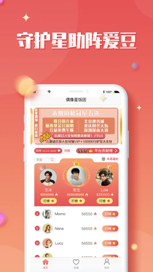 追星路上手牵手,我们陪Ta一起走!全明星实时热度数据在线订阅,超多粉丝福利助力你陪伴偶像一起逐梦。还有饭团公益活动正能量告白,因为偶像成为更优秀的自己!