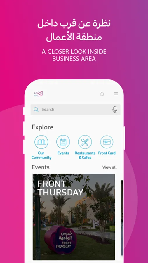 The app that guides you to shop, dine, entertain in the Shopping Area of Riyadh Front; one of the top destinations in Riyadh! Through this app, you can easily know what's going on in Riyadh Front. You will easily know the retailers & restaurants names, services and events to be able to plan your day. Nonetheless, the app opens doors for you to know more about the Business Area of Riyadh Front that have a collection of the top local and international companies. The app will give you the information you'd need to know about the offices and companies located in the Business Area of Riyadh Front.