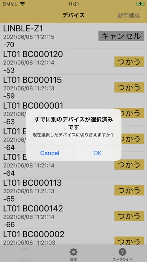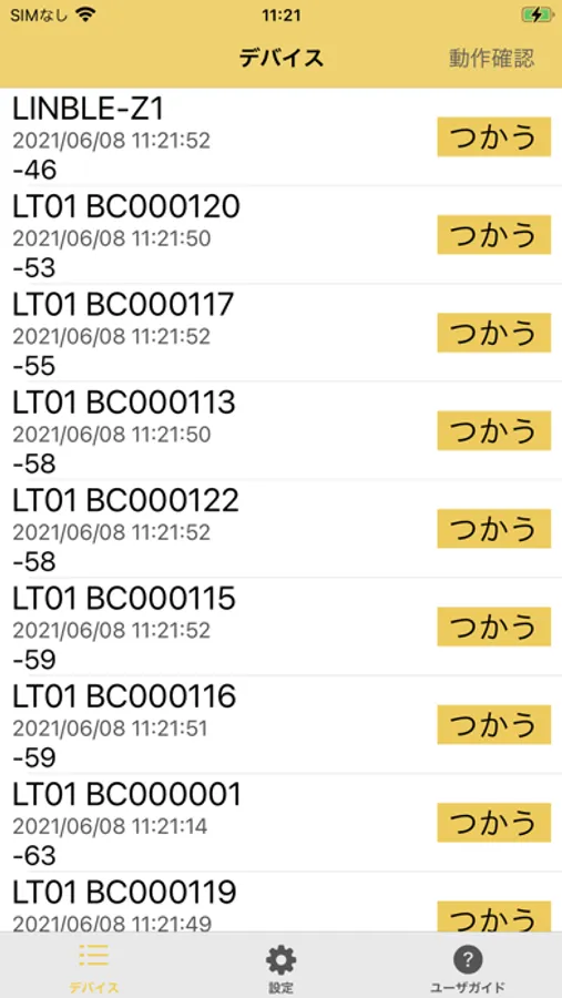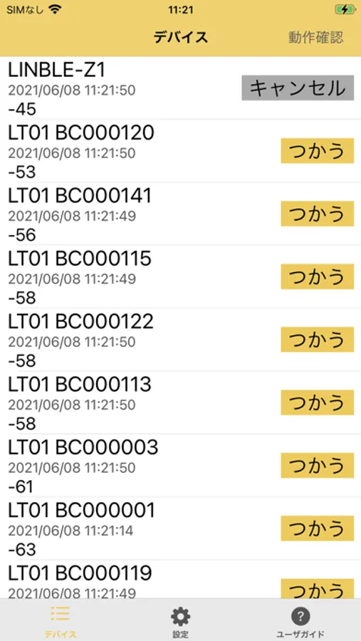 2. アプリを開き、デバイスタブから接続したいLINBLEを選択します。