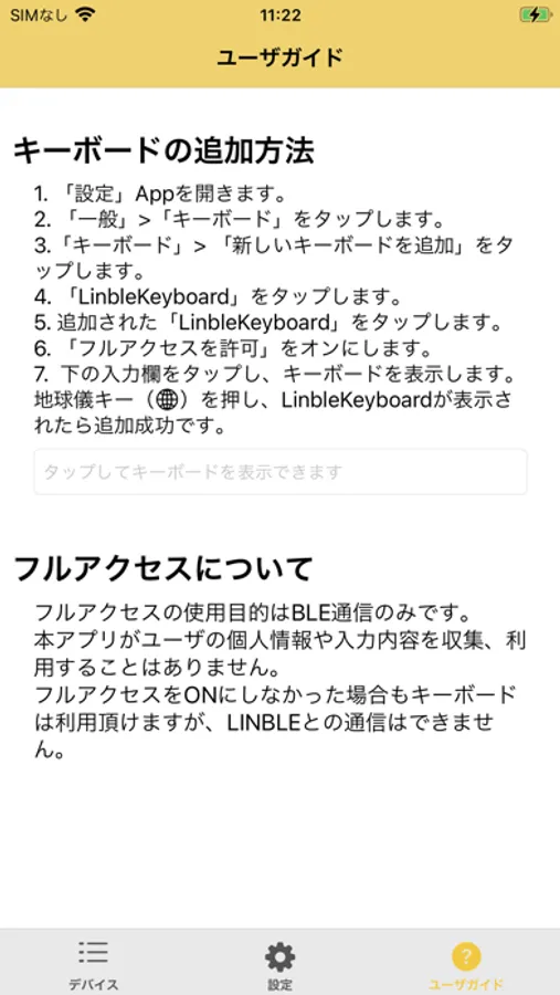 7. 本アプリ、またはメモアプリなどで、キーボードを表示します。地球儀キーを押し、LinbleKeyboardが表示されたら追加成功です。