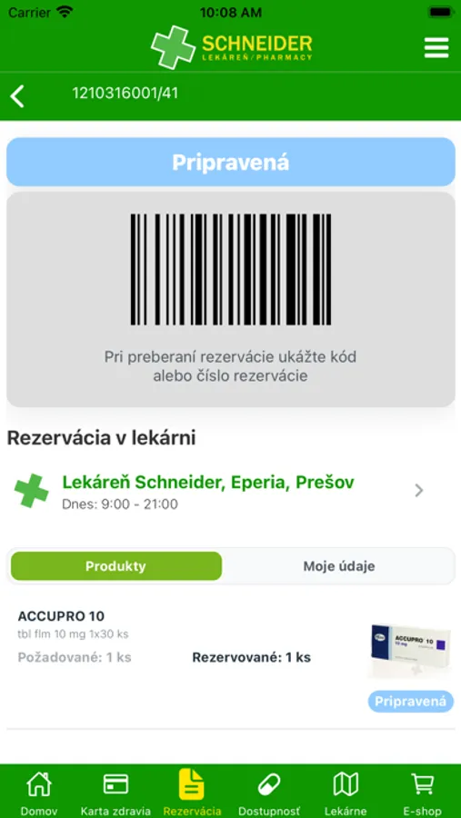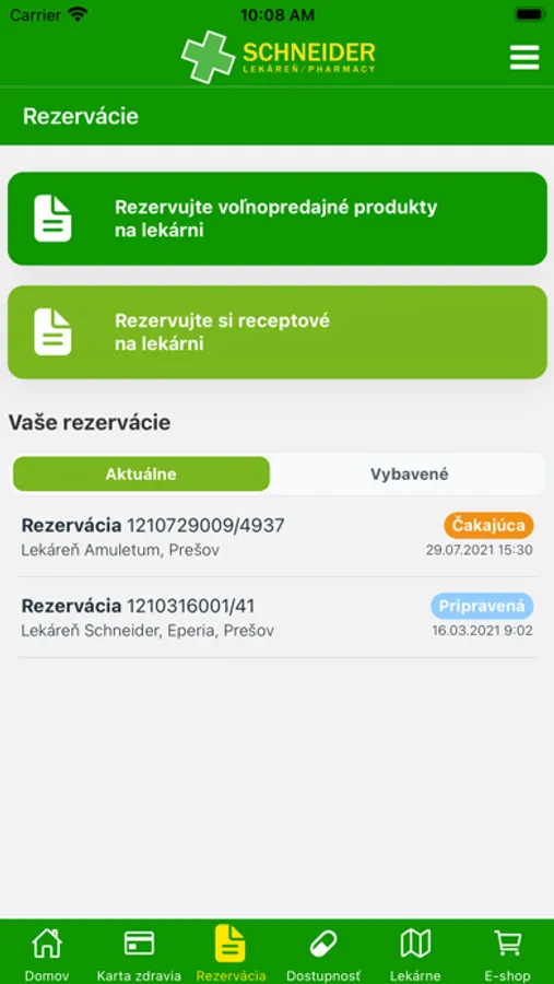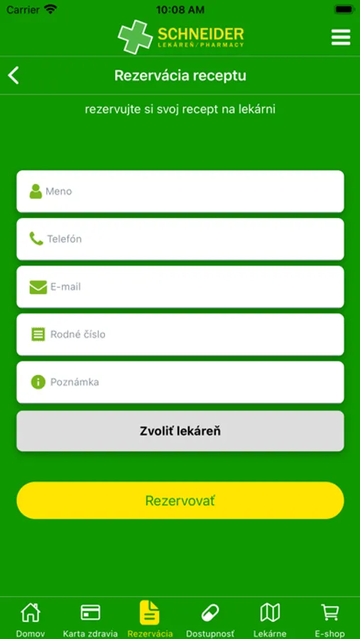 Rezervujte svoj recept, produkt alebo liečivo na lekárni.