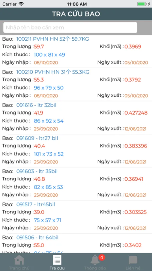 - Kiểm tra thông tin về cân nặng,kích cỡ,ngày nhập,ngày xuất vv của bao hàng
