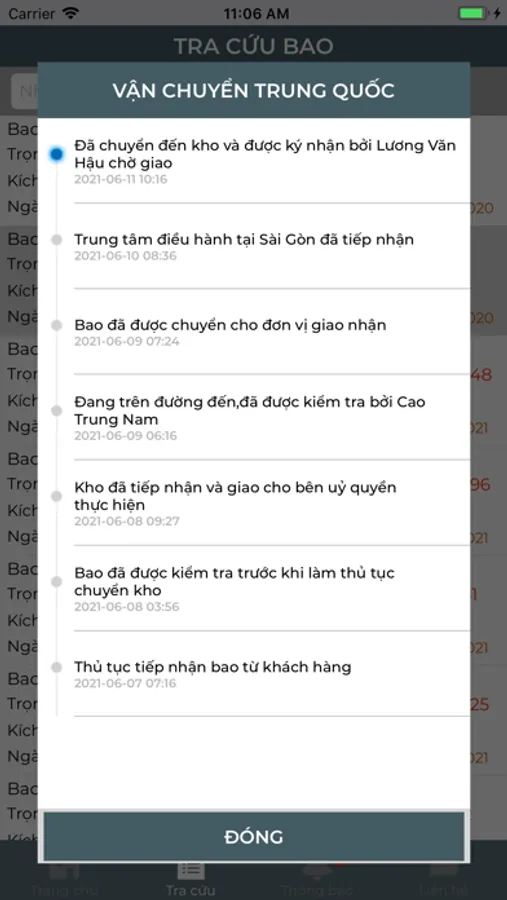 - Kiểm tra đươc lịch sử di chuyển của bao hàng đó