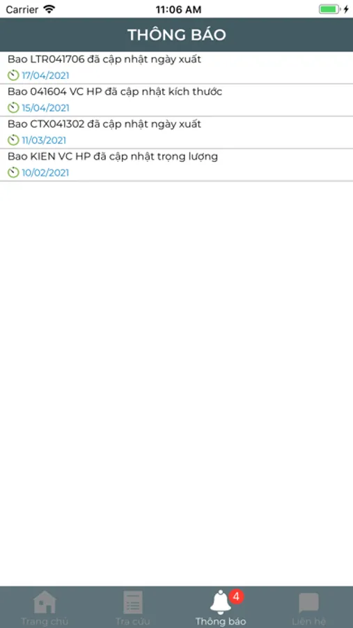 - Nhận thông báo tức thời về tình trạng cập nhật của bao hàng đó.