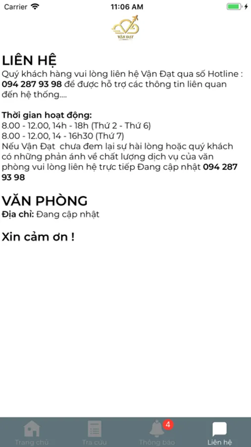 Vận Đạt xây dựng ứng dụng để liên kết người dùng với Vận Đạt giải quyết được việc chủ động tra cứu thông tin của khách hàng.Các chức năng ứng dụng giúp người dùng sử dụng bao gồm :