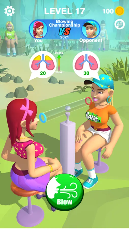Like similar games like slap kings, blow kings game ideas come from YouTube and Tik Tok. In real life, many influencers have held blowing insect contests, and everyone enjoys it. Now, you will become a blow master and use your blow skills to give your opponent a fatal blow. When you win the game, you will watch your opponent eat chili, eat balls...how far will you eventually go and become a real blow master. This is a super fun casual game, just show them who has the real blowing ability!
