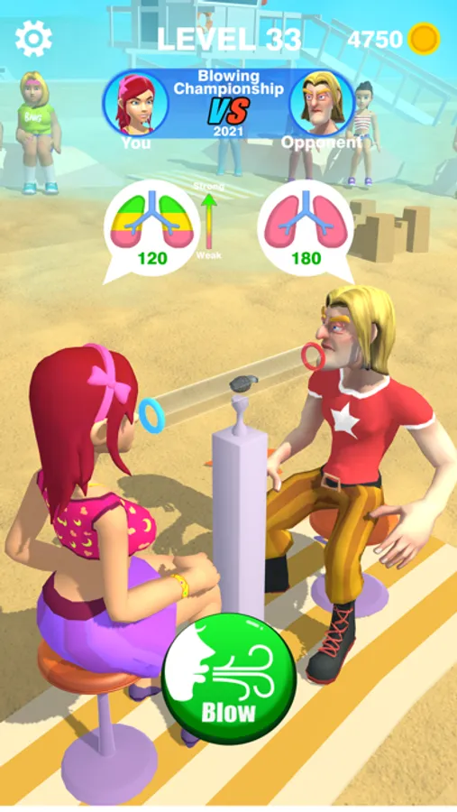 According to the proportion of air inhaled in the lungs, find the right time to launch a blow attack and defeat the opponent in the shortest time! You need to master the blowing rhythm as soon as possible, otherwise, you will get disgusting punishment!