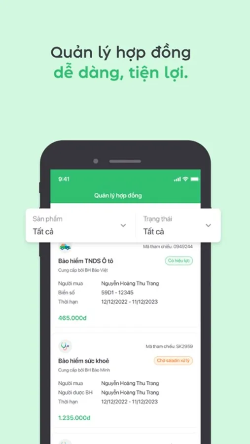 - Nhanh chóng, tiện dụng: Saladin cũng tích hợp nhiều phương thức thanh toán khác nhau để bạn có thể thuận lợi thanh toán cho các đơn bảo hiểm của mình. Với tính năng lưu trữ các chứng nhận bảo hiểm bạn đã mua ngay trong Ứng dụng, bạn có thể dễ dàng tra cứu các đơn bảo hiểm mà bạn đã mua và yêu cầu bồi thường ngay trên ứng dụng nhanh chóng, thuận tiện.