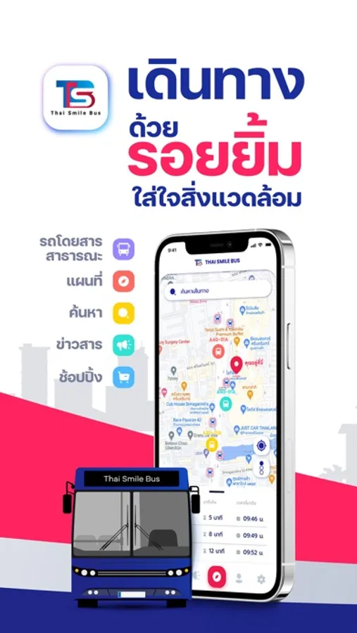 พลิดเพลินไปกับการเดินทางที่แสนสะดวกสบาย ด้วยแอพพลิเคชั่น TSB Go ที่มาพร้อมฟังก์ชั่นครบวงจร พร้อมกับความปลอดภัยที่จะดูแลคุณตลอดยันถึงที่หมาย แอพพลิเคชั่นนี้ยังสามารถค้นหาจุดหมายปลายทางและสายรถเมย์ ได้อย่างง่ายดาย