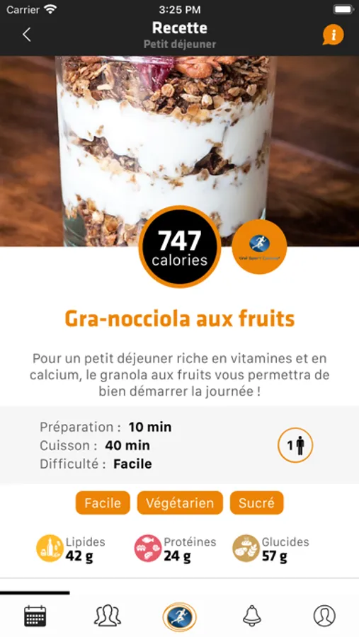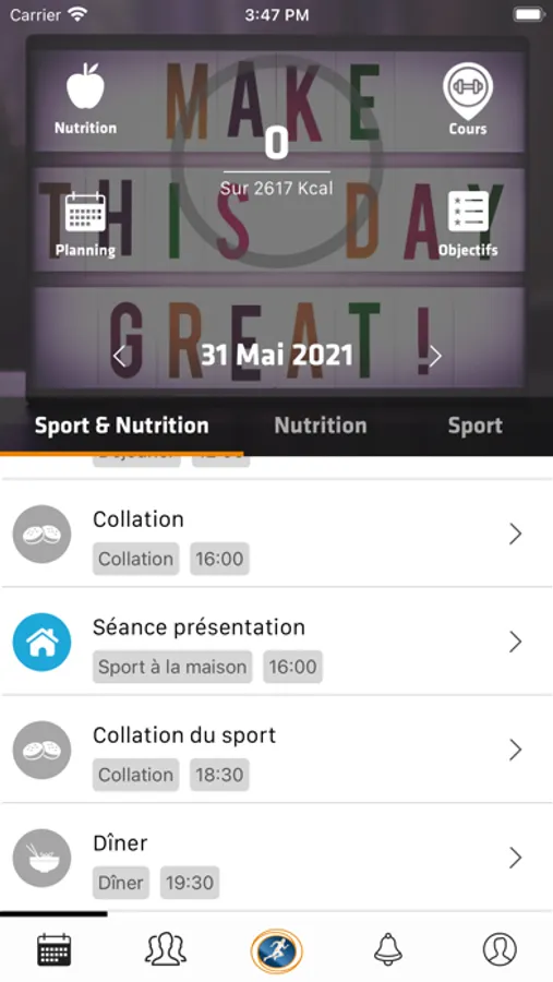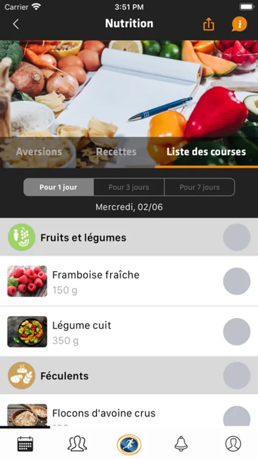 Ce dernier offre une vision globale de vos séances et recommandations nutritionnelles pour votre journée ou votre semaine.
