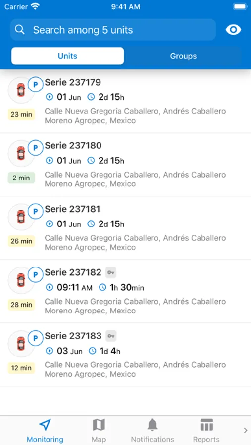 - Units list management. Get all the necessary information on movement and ignition state, data actuality, and unit location in real time.