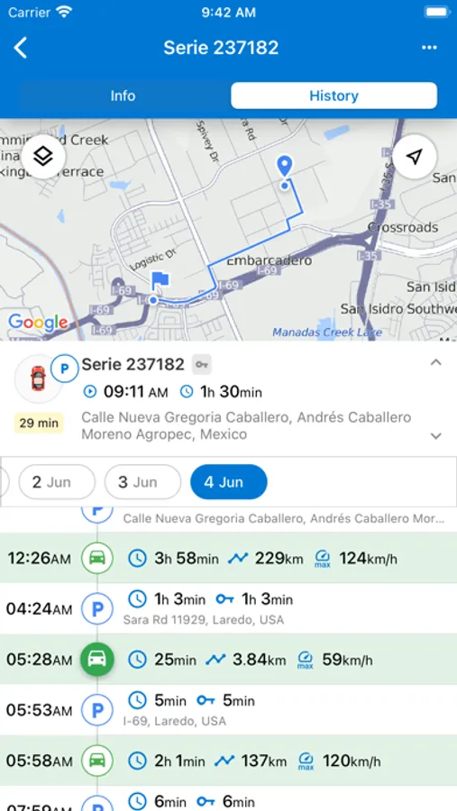 - Tracking mode. Monitor the unit’s exact location and all the parameters received from it.