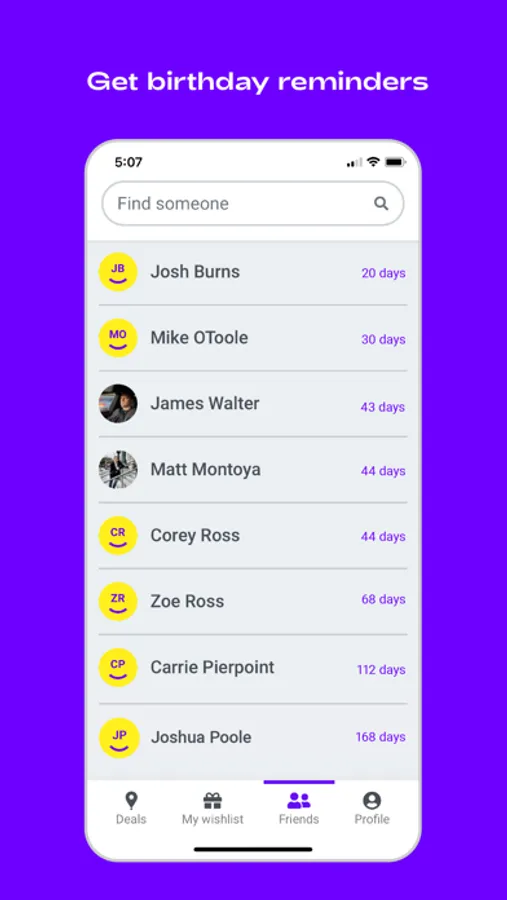 Add your friends and we’ll remind you ahead of time so you never miss another birthday. If they've got a Yayday WishList, you'll know exactly what to get them.