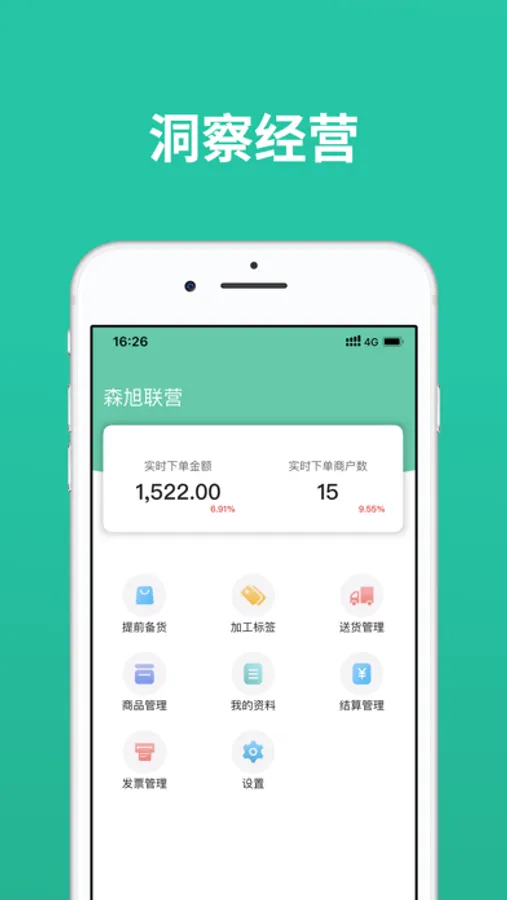 - 可以移动办公,随时查看订单数据,配送信息,结算管理