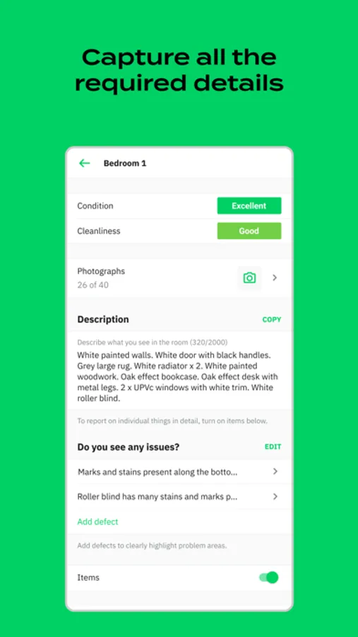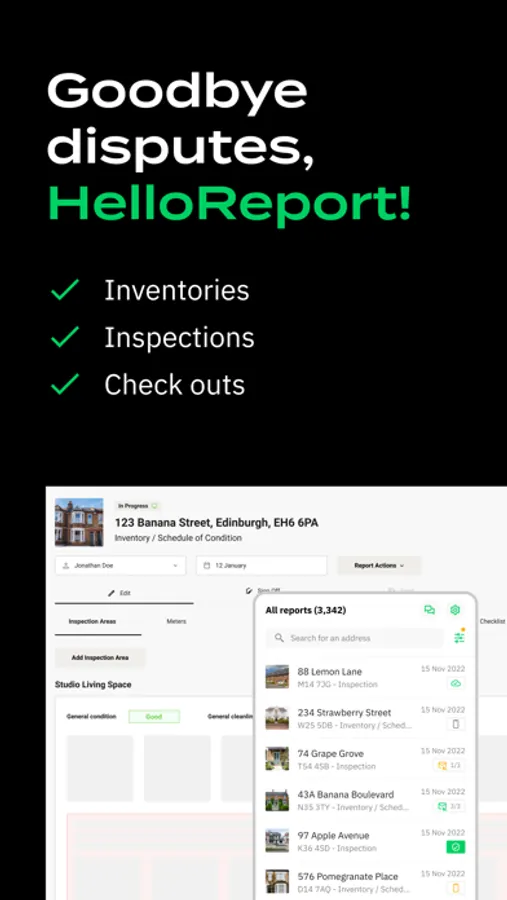 Create professional property inventory, inspection and check out reports the easy way with HelloReport.