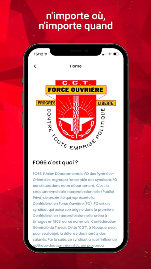 Découvrez dans l'application Force Ouvrière 66 toutes les actualités, les élus, les liens utiles, les activités sociales, une section spéciale FO66 TV, ainsi qu'un espace adhérents avec des infos utiles supplémentaires.