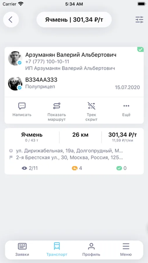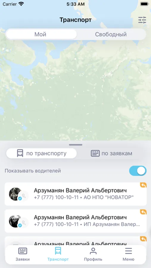 * В единой экосистеме просматривать текущее местоположение наемного и собственного транспорта, оборудованного ГЛОНАСС,