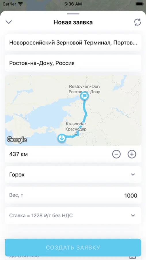 * Номинировать транспорт Грузовладельцу предлагаю своей ставку перевозки