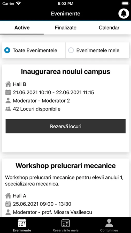 Evenimente CTMN este aplicația prin care îți poți rezerva un loc la orice eveniment organizat in sala multifunctionala a Colegiului Tehnic Miron Nicolescu din București. Tot ce trebuie să faci este să-ți creezi un cont după care vei putea vedea evenimentele organizate și îți vei putea rezerva un loc. Prezintă codul QR primit prin aplicație pentru a intra la eveniment.