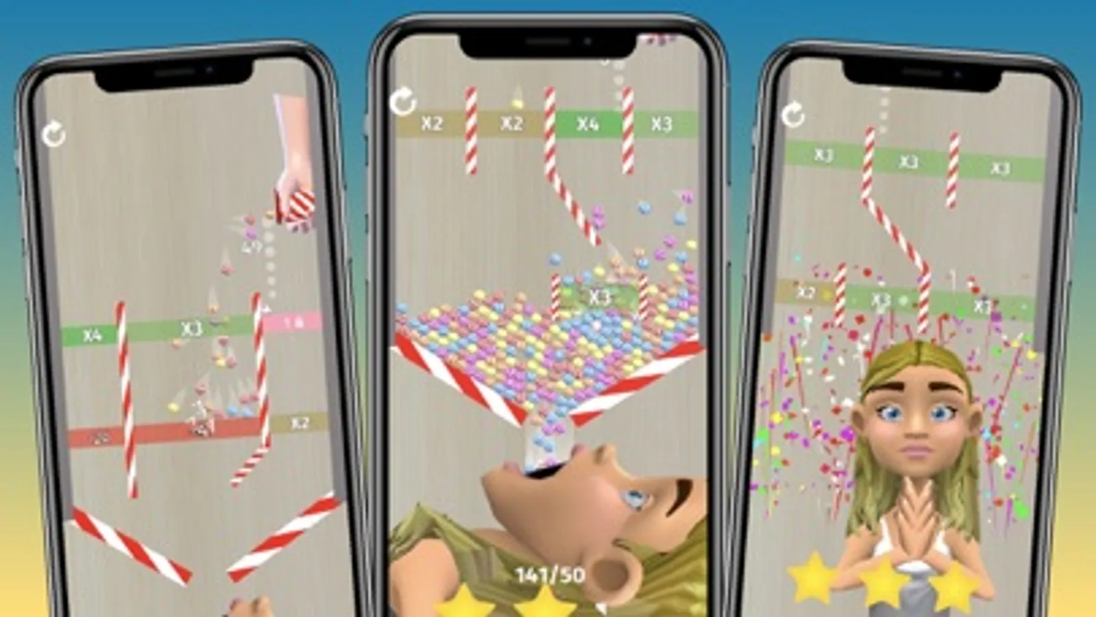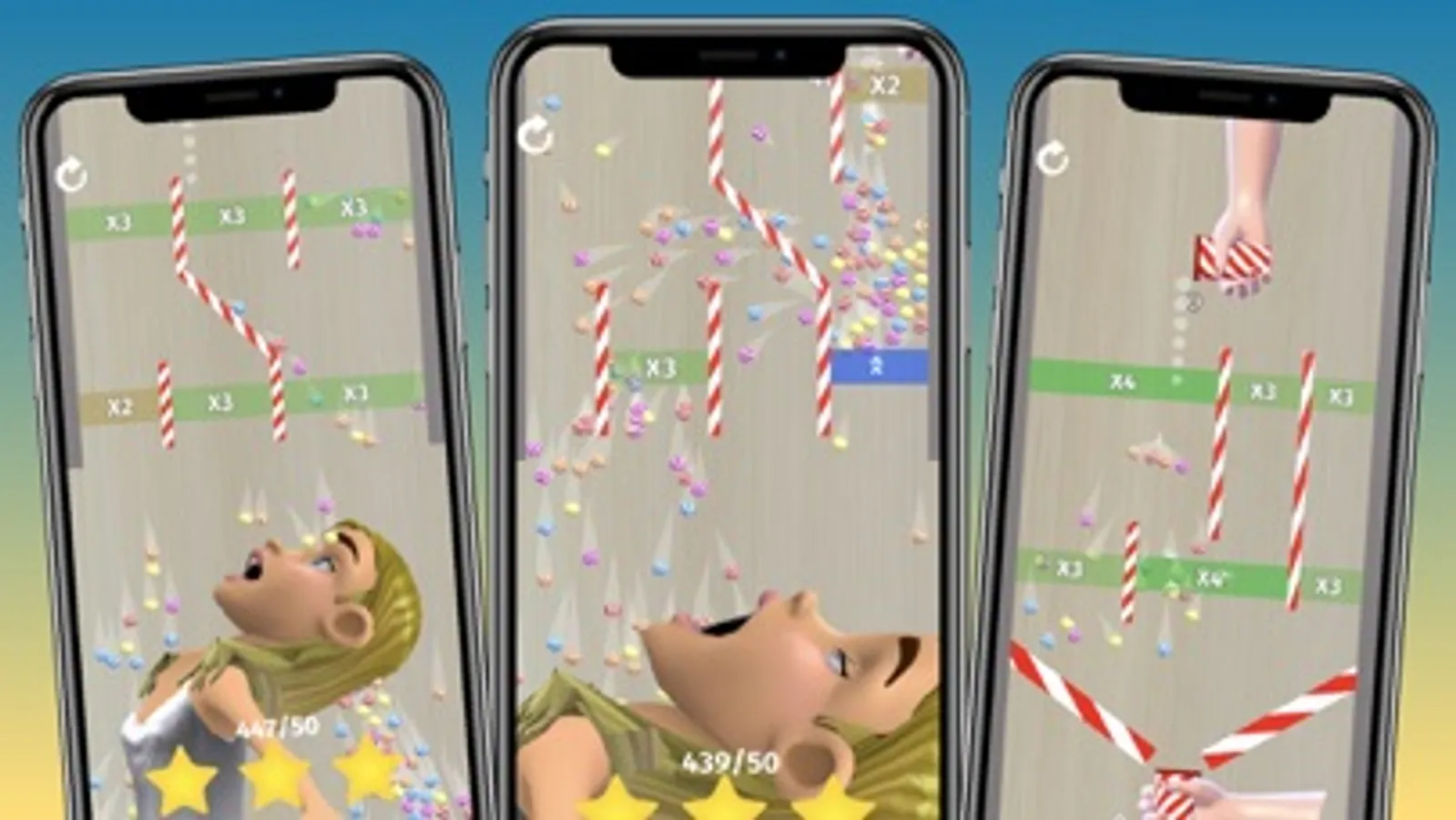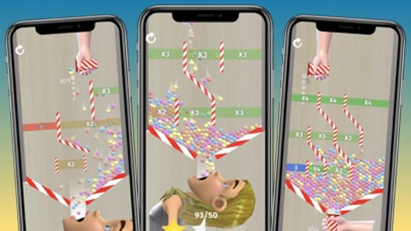 Drop candies from the cup through the bonuses, to multiply and increase them in the best path possible and unlock the challenge at the end of the level.