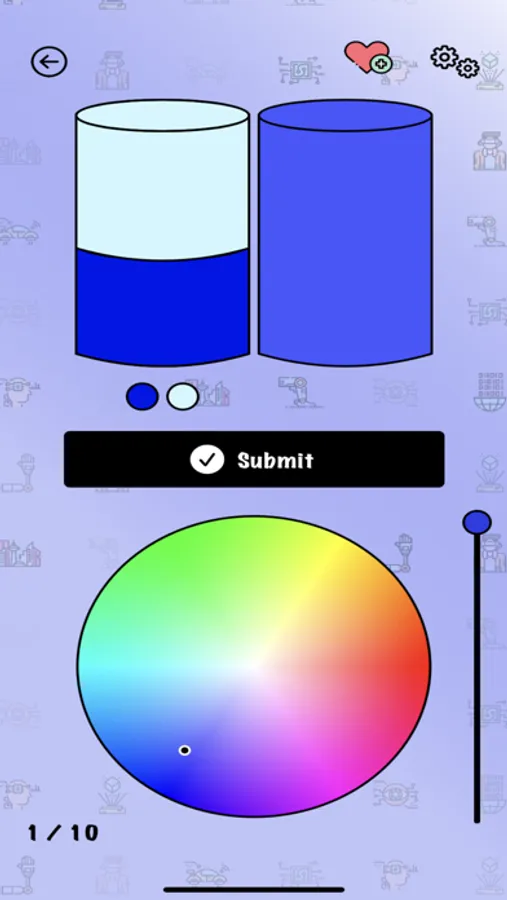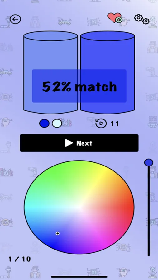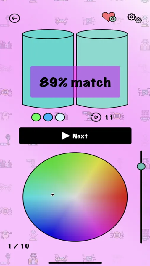 A hyper casual color matching game where you guess the color created when different colors are mixed together.