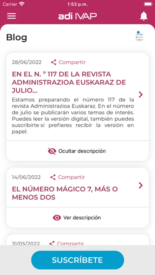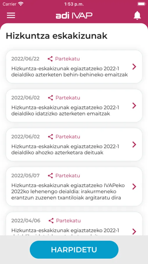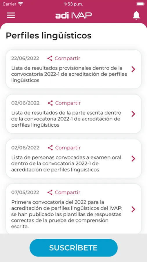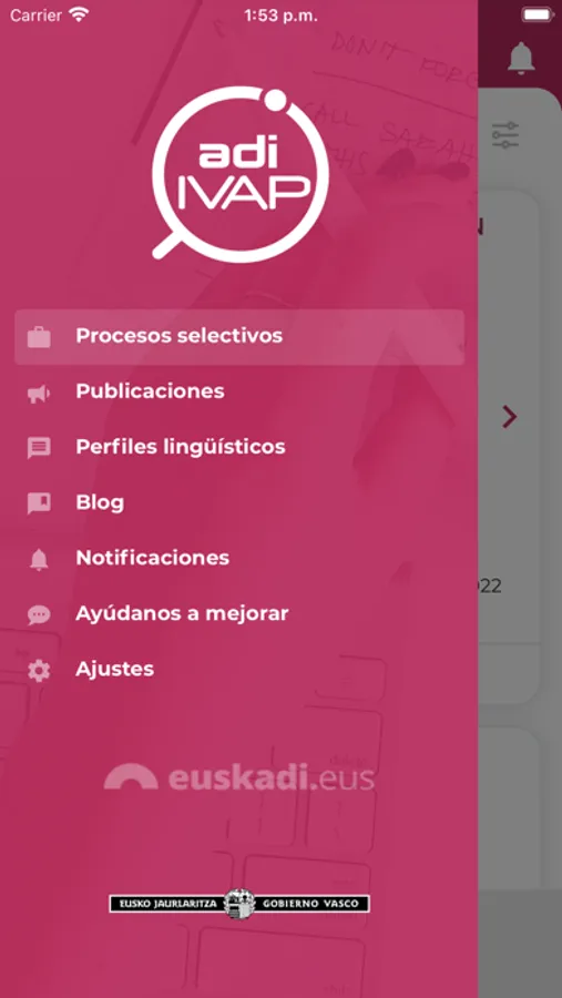 Visualización de las novedades en los procesos selectivos y publicaciones del IVAP. Recepción de notificaciones permitiendo estar al día de dichas novedades.